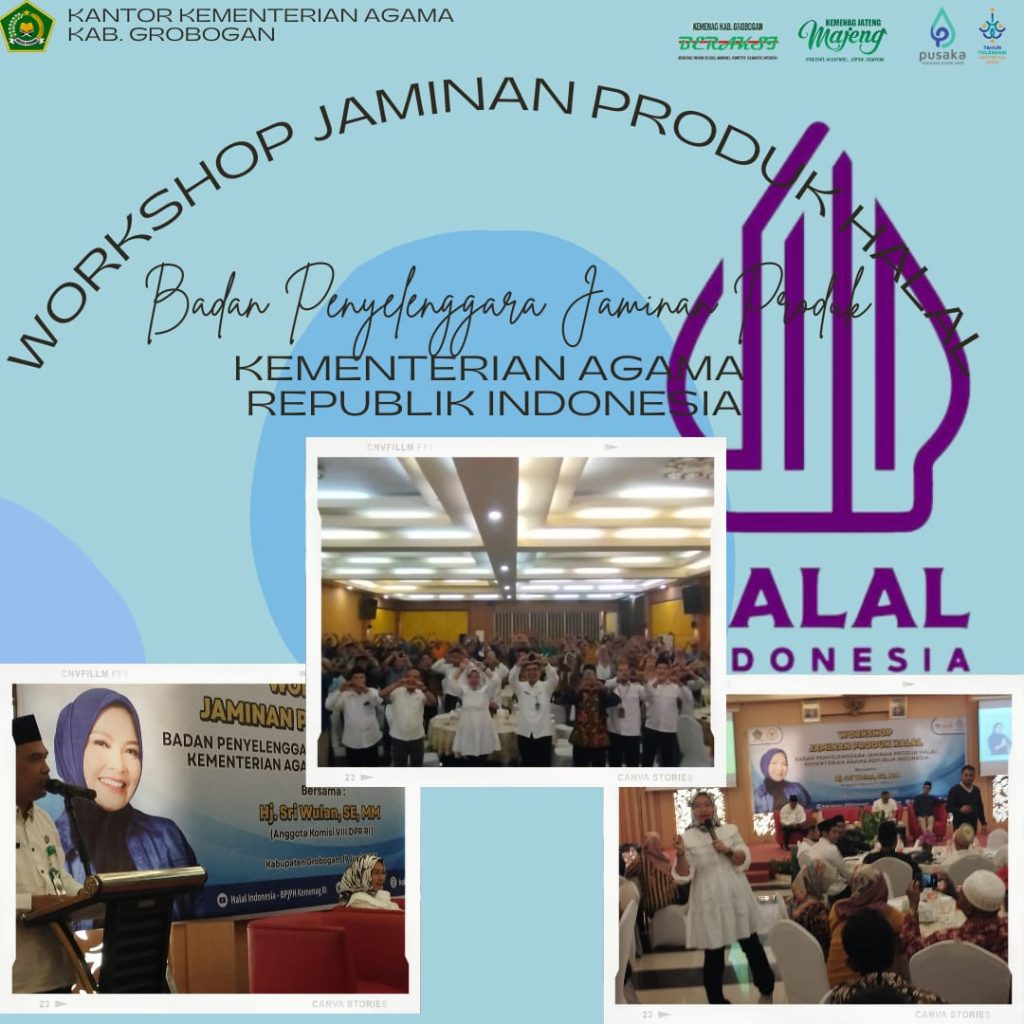 RILISJATENG.COM– Pemenuhan produk halal merupakan sebuah kebutuhan penting bagi Indonesia yang mayoritas penduduknya beragama Islam. Berkenaan itu Kantor Kementerian Agama Kabupaten Grobogan bersama BPJH Kementerian Agama RI mengadakan Workshop Jaminan Produk Halal. Workshop yang dihadiri anggota Komisi 8 DPR RI Sri Wulan, Kepala Kanwil Kemenag Prov. Jateng dan diikuti 100 orang terdiri dari unsur pegawai di lingkungan Kankemenag Grobogan, pendamping produk halal dan pelaku usaha, selama 2 hari Minggu dan Senin (19-20/06/23) di Hotel 21 Purwodadi.