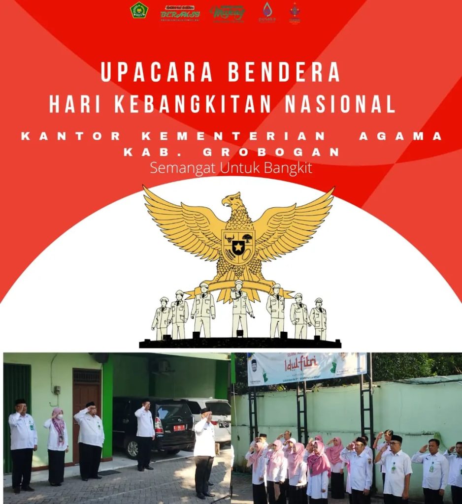RILISJATENG.COM– Dalam rangka peringatan Hari Kebangkitan Nasional (Harkitnas) yang ke-155 pada tanggal 20 Mei 2023 lalu, Senin (22/5) pagi Kantor Kementerian Agama (Kemenag) Kab. Grobogan melaksanakan upacara bendera Hari Kebangkitan Nasional Tahun 2023 di halaman Kantor Kemenag Kab. Grobogan yang diikuti seluruh ASN dilingkungan Kantor Kemenag Kab. Grobogan dan Kepala Kantor Kemenag, Fahrur Rozi pada apel pagi ini bertindak sebagai Pembina Upacara.